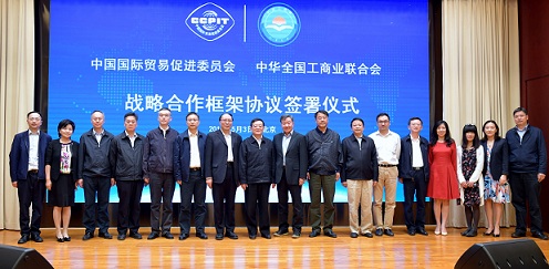A strategic cooperation framework agreement was signed between China Council for the Promotion of International Trade (CCPIT) and All-China Federation of Industry and Commerce.