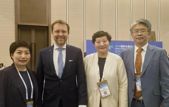 市贸促会梁洁会长6日下午在上海与德国慕尼黑博览集团首席执行官Stefan Rummel先生会面交流。慕尼黑展览(上海)有限公司中国区总裁沙怡文、慕尼黑展览(上海)有限公司总经理、大中华地区首席执行官徐佳、市贸促会会展办负责人陪同参加。