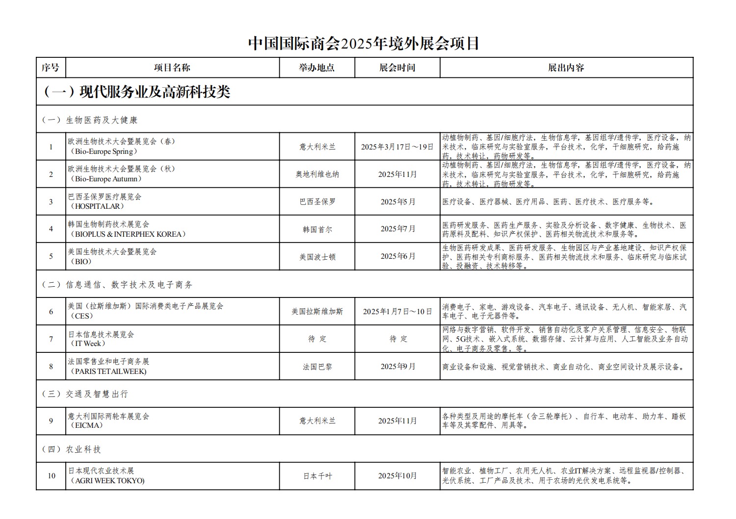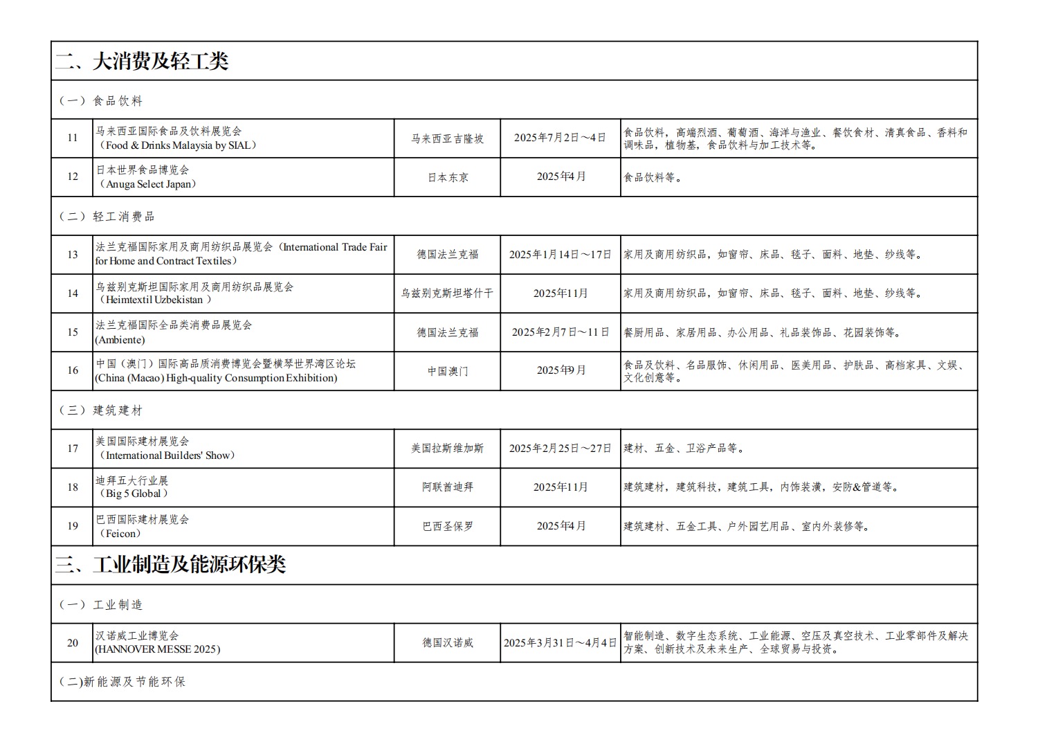 中国国际商会2025年境外展会项目